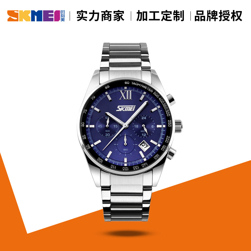 时刻美厂家直销新款男士商务石英表休闲防水学生表品牌钢带手表