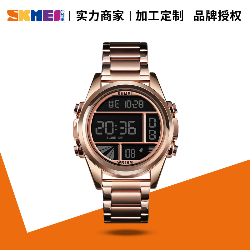skmei跨境爆款学生电子手表 男士时尚潮人新款钢带手表厂家直销
