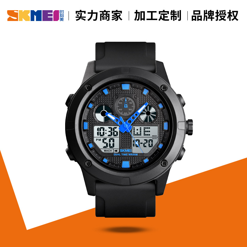 时刻美时尚潮人运动双显电子表数显指针一体多功能创意款学生手表