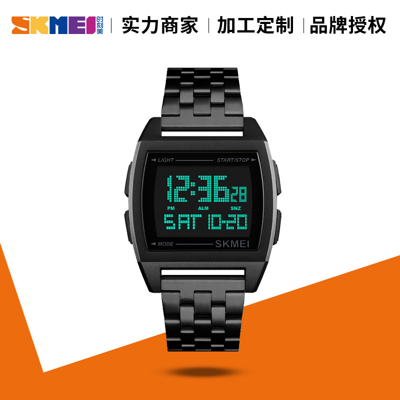 时刻美商务潮流东南亚跨境货源长方形手表土豪金男士钢表带电子表
