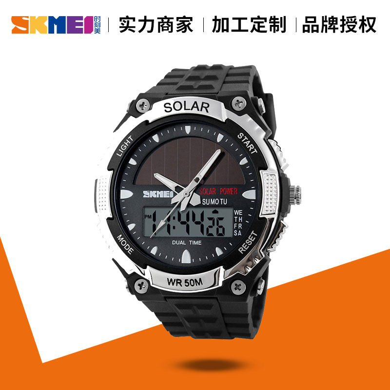 时刻美男士时尚太阳能手表防水电子表户外运动男表学生儿童腕表