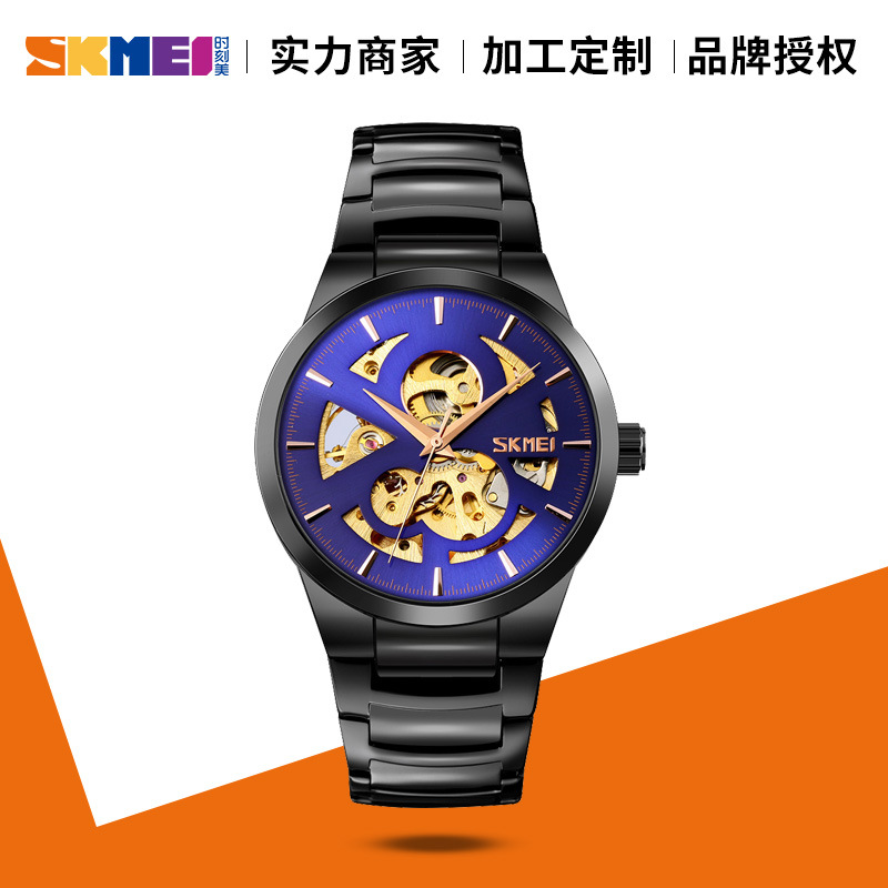 时刻美透底镂空自动机械表男士商务时尚直播手表批发厂家钢带腕表