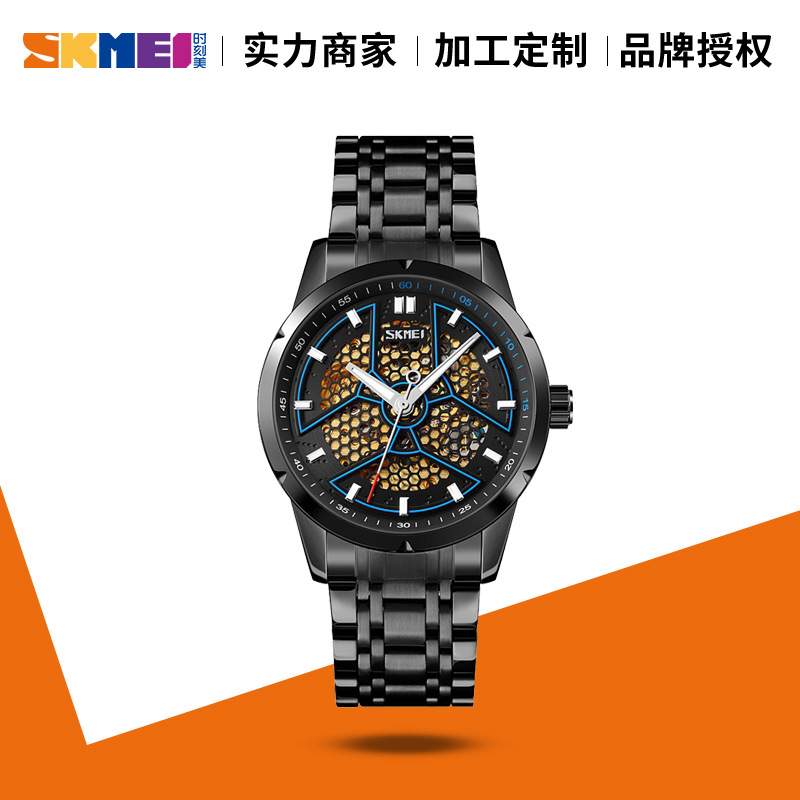 时刻美创意款蜂巢全自动男士镂空机械手表 商务夜光品牌国产腕表