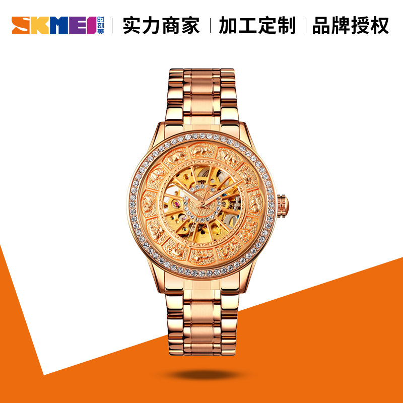 时刻美商务成熟男士自动机械手表 镂空间金钢带礼品厂家国产腕表