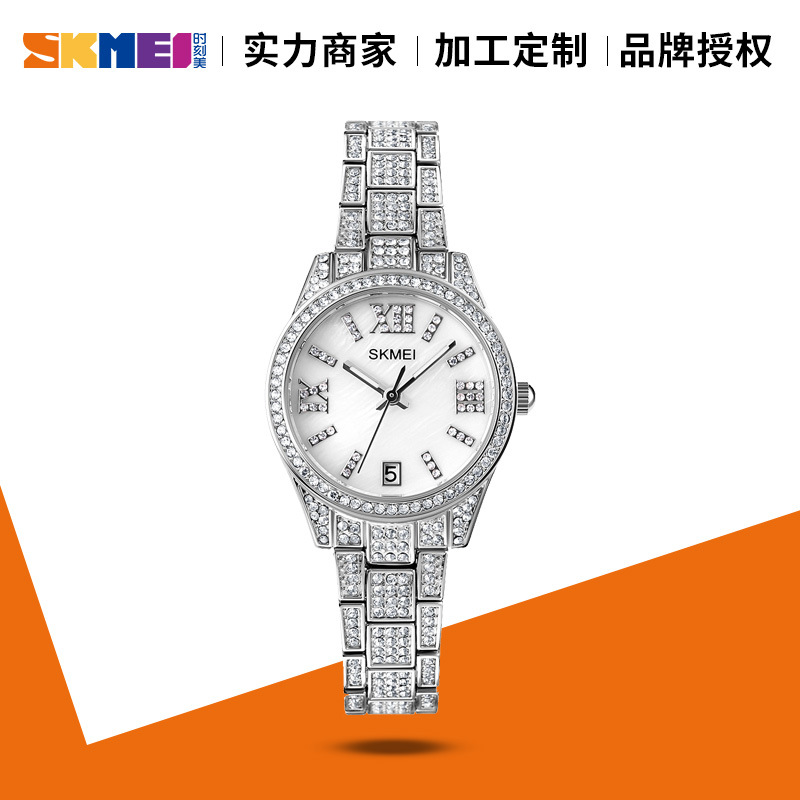 时刻美复古时尚罗马风情手表 镶满钻女士新年穿搭锌合金防水手表