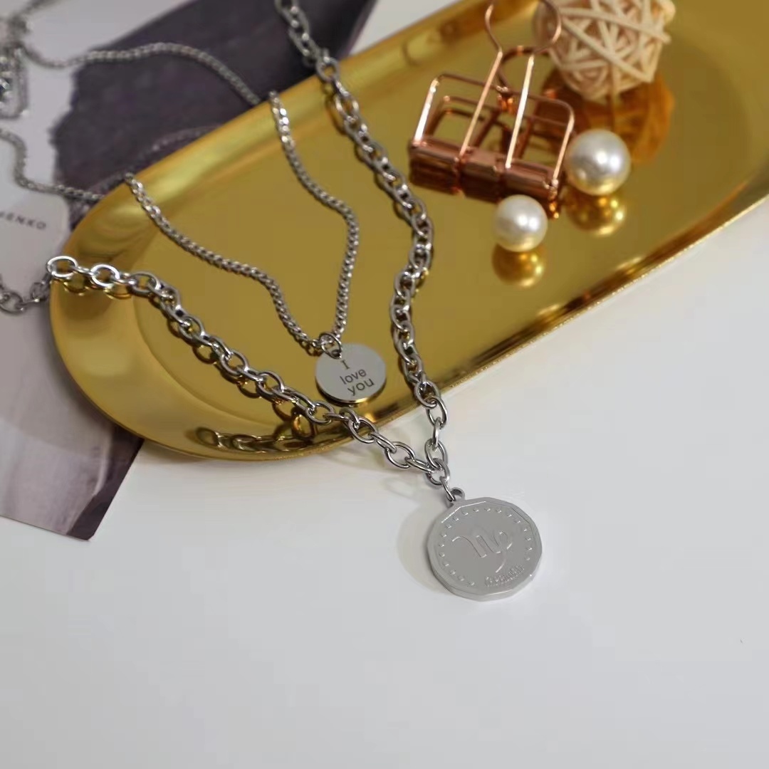 钛钢中性锁链双层不规则韩版个性爆款锁骨链 纯手工打造饰品批发