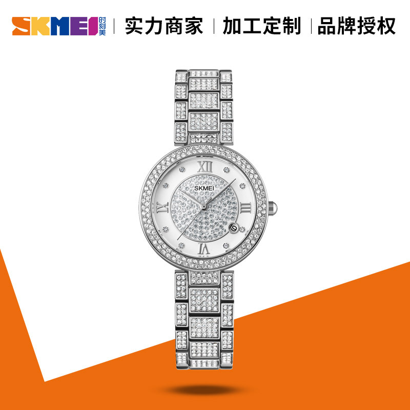 时刻美满天星镶钻女士时尚手表 INS风闪亮玫瑰金潮流网红款石英表