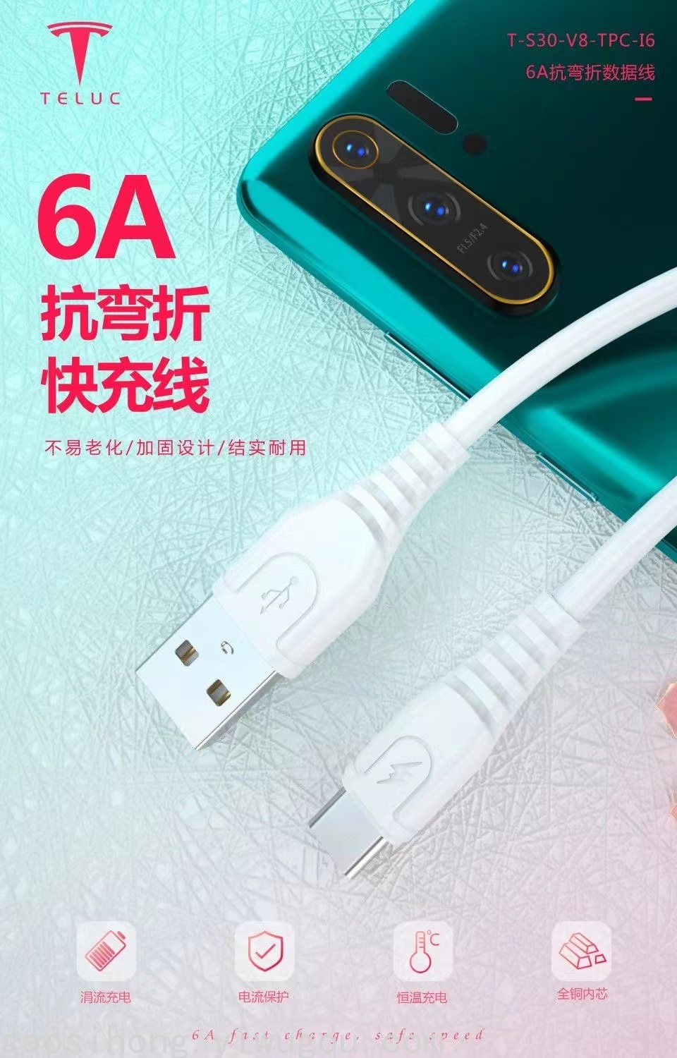 TELUC 特鲁斯 6A超级闪充数据线原装华为TYPE-C数据线闪充通用