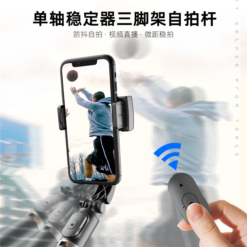 Q08单轴手机稳定器蓝牙自拍杆三脚架直播拍照横竖拍落地桌面支架