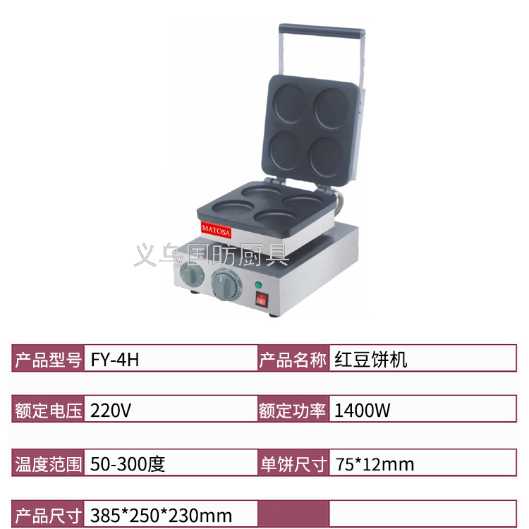 商用电热红豆饼机FY-4H台湾车轮饼机4孔不粘锅红豆饼机小吃设备