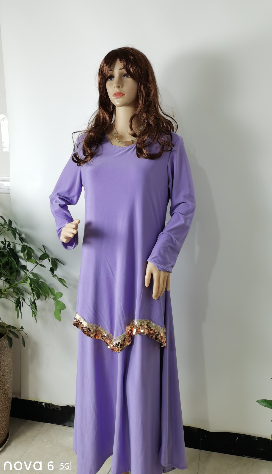 外贸热销中东阿拉伯非洲穆斯林水晶麻亮片花边下摆女士套装裙子