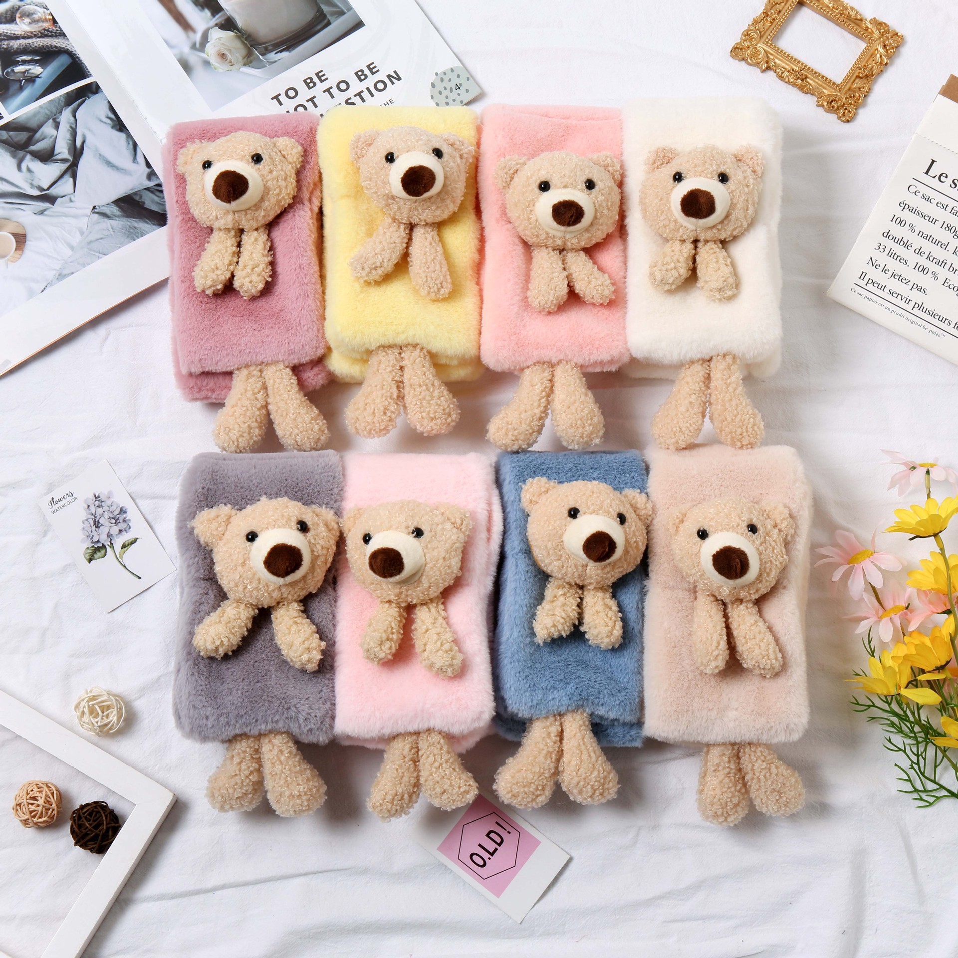 韩版立体小熊儿童围巾批发秋冬新款仿兔毛绒可爱玩偶围脖保暖围巾