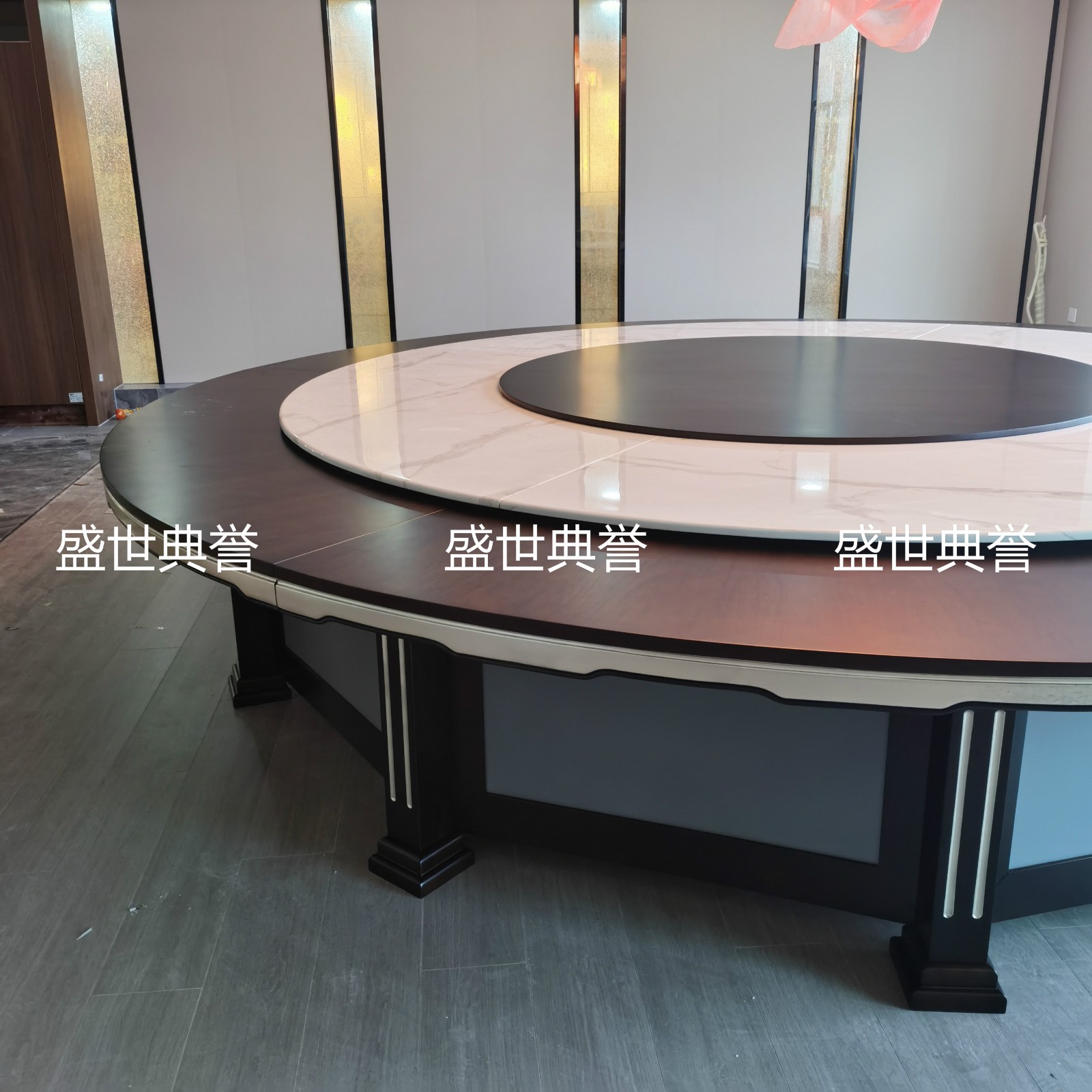 宜春星级酒店实木餐桌椅会所现代轻奢电动桌餐厅包厢电动转盘圆桌