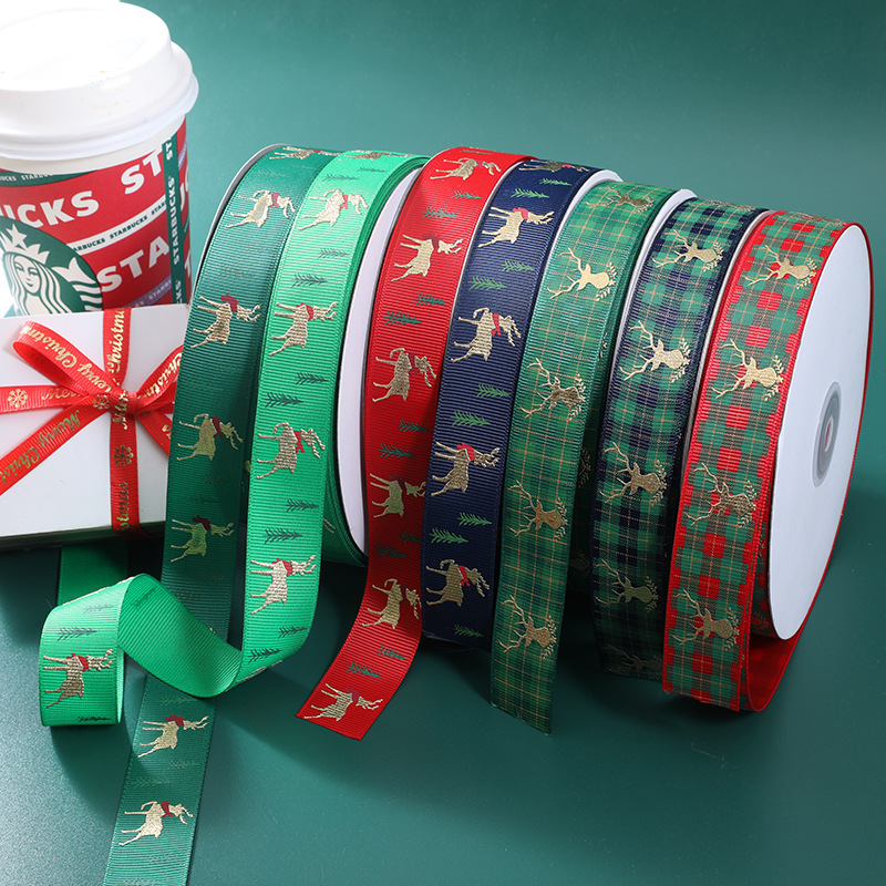 2021跨境圣诞丝带蝴蝶结礼品盒包装彩带蛋糕缎带小鹿织带提花批发