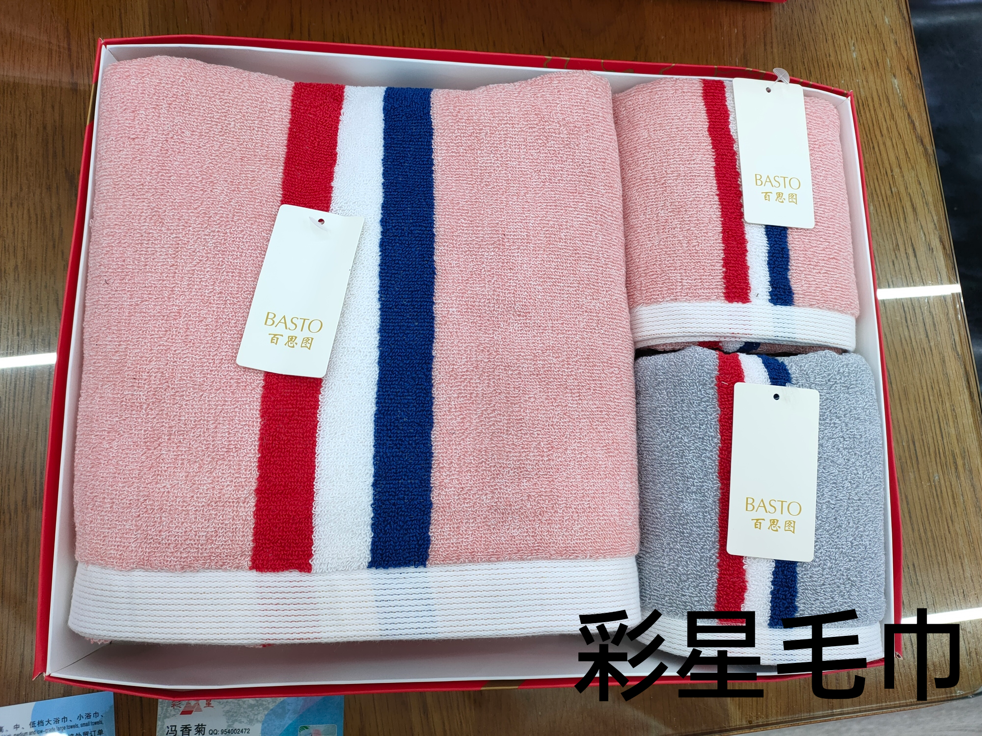 彩星纯棉提花三件套礼盒毛巾面巾礼品毛巾浴巾