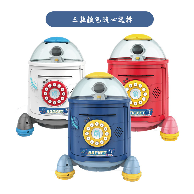 新款跨境指纹火箭密码存钱罐 自动储蓄罐保险箱柜ATM机儿童玩具