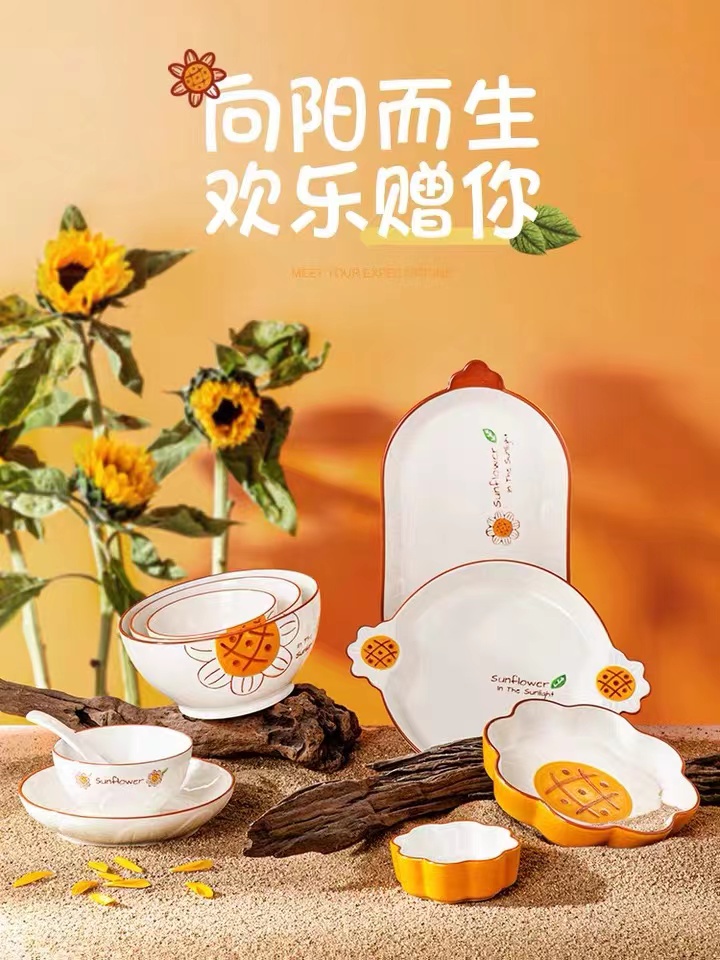 向阳花餐具家用网红饭碗家用个性创意异形餐具碗盘碟