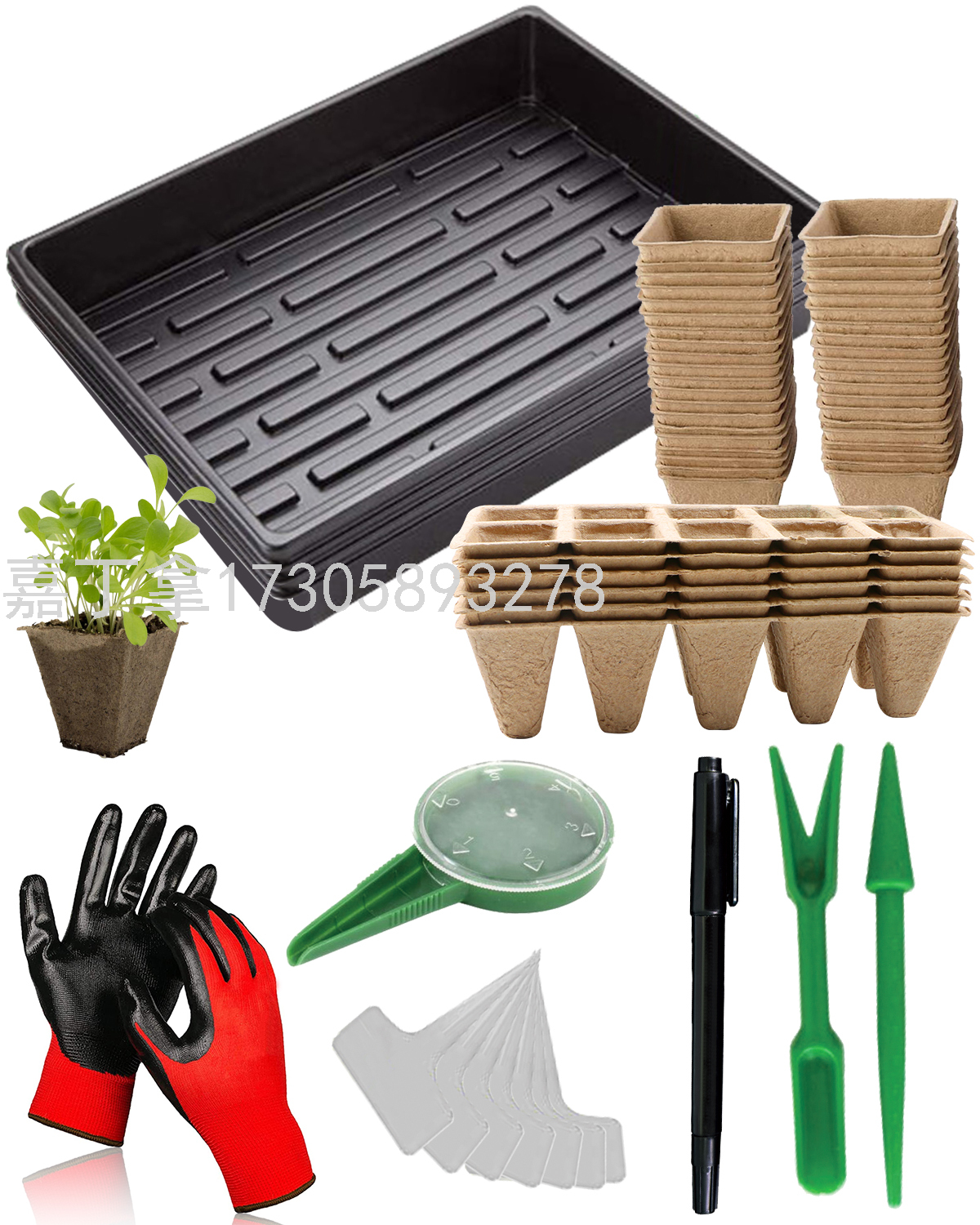 育苗套装橡胶手套/十穴纸育苗钵/塑料种子育苗盘/园艺花牌/移苗器