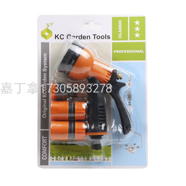 园林/园艺/五金工具绿色/橙色八功能水枪4PCS接头水枪组套吸卡装
