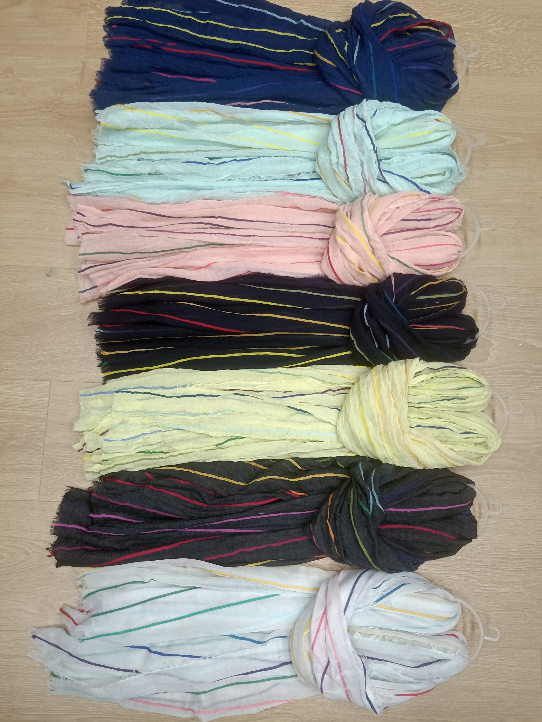 彩直条纹色织围巾