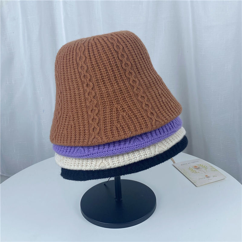渔夫帽女秋冬季针织毛线帽百搭休闲可折叠时尚韩版日系水桶帽盆帽