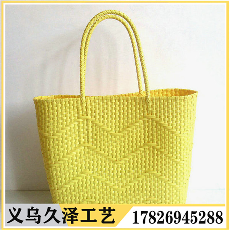 新款外贸塑料细条编织手提篮菜篮子包度假沙滩包手提包单肩包女包