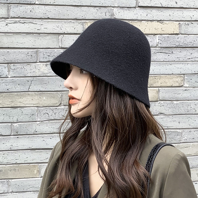 羊毛小沿渔夫帽女秋针织帽女 韩版小礼帽日系帽子女秋冬百搭盆帽