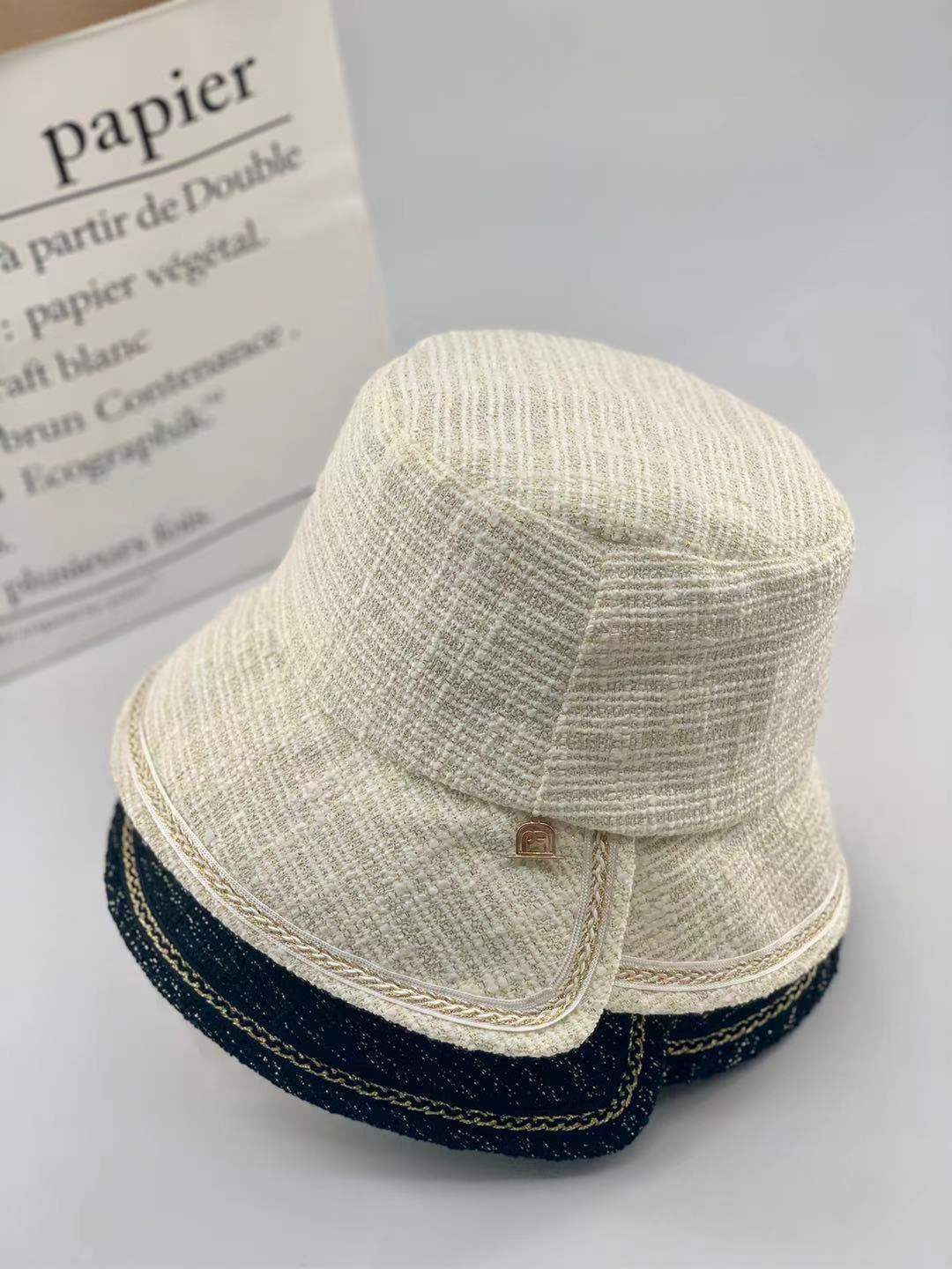 新款渔夫帽小香风开叉韩版遮阳秋款防晒水桶帽子显脸小女金丝盆帽