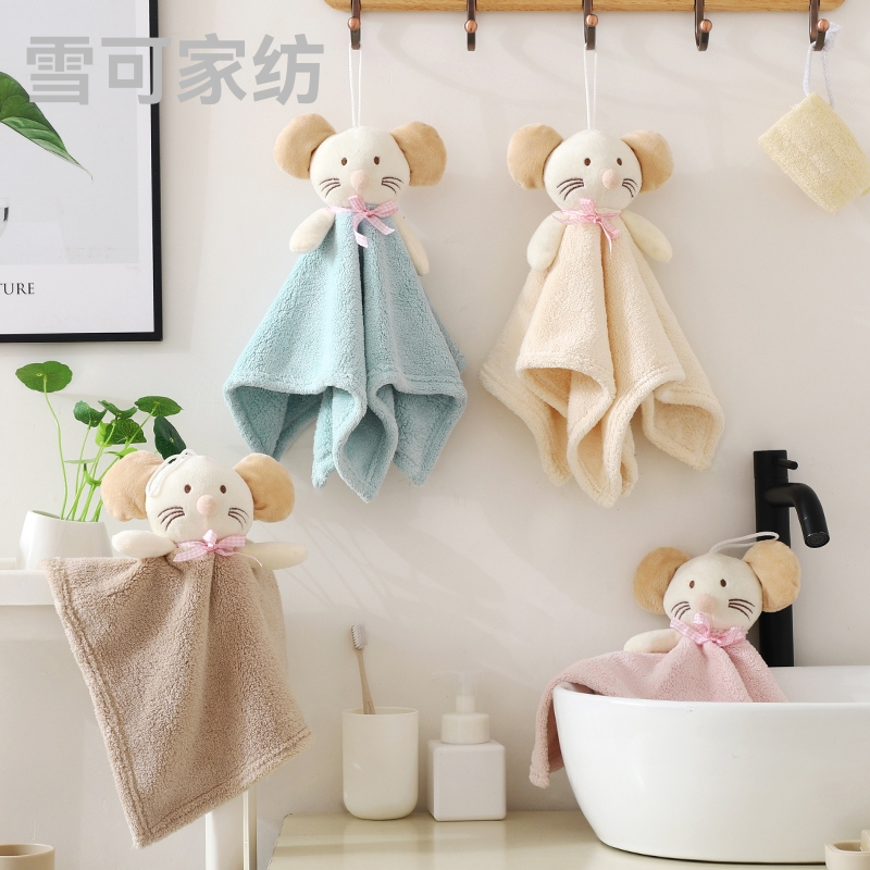小老鼠挂巾擦手巾卡通动物幼儿园安抚巾超强吸水洗手间装饰品