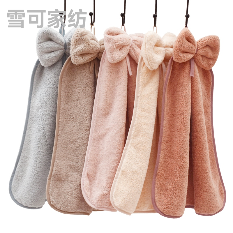 蝴蝶结擦手巾珊瑚绒吸水挂巾高品质生活馆可贴牌生产