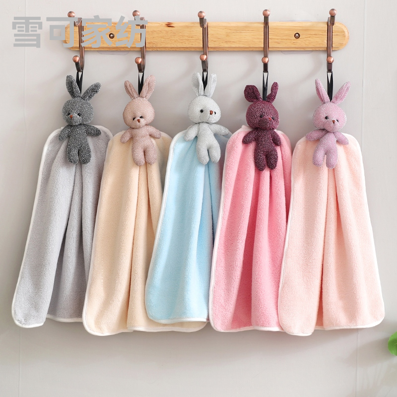 晶莹兔擦手巾珊瑚绒吸水挂巾卫生间装饰毛巾