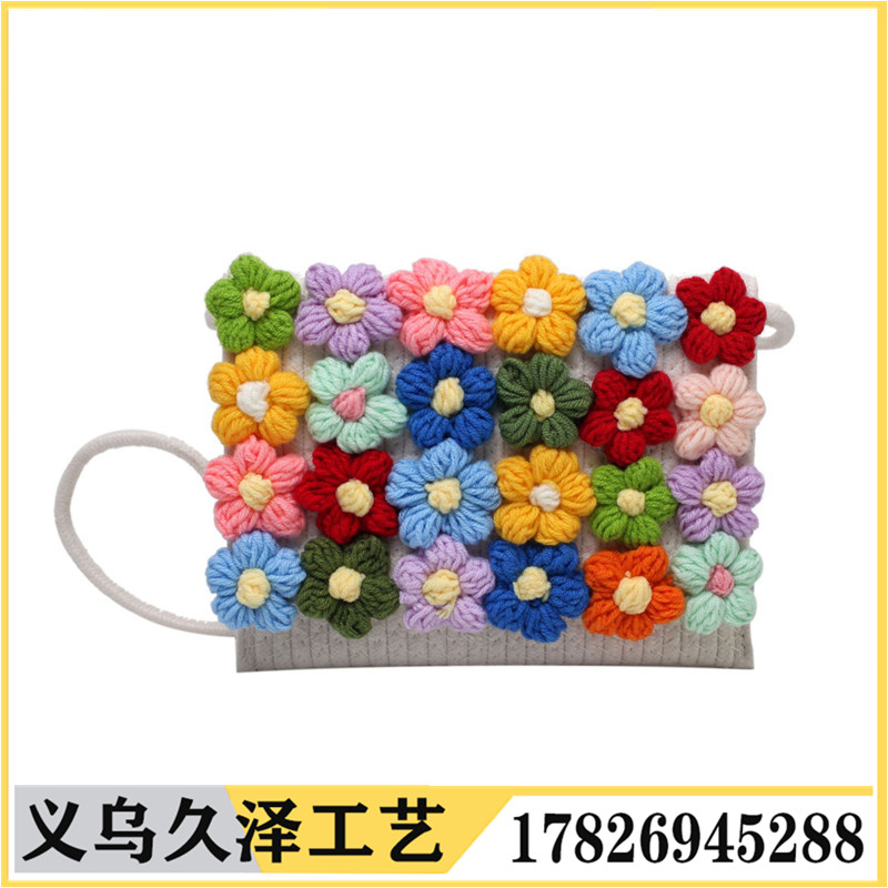 跨境毛线编织小包包新款可爱泡芙花草编包沙滩度假单肩斜挎包