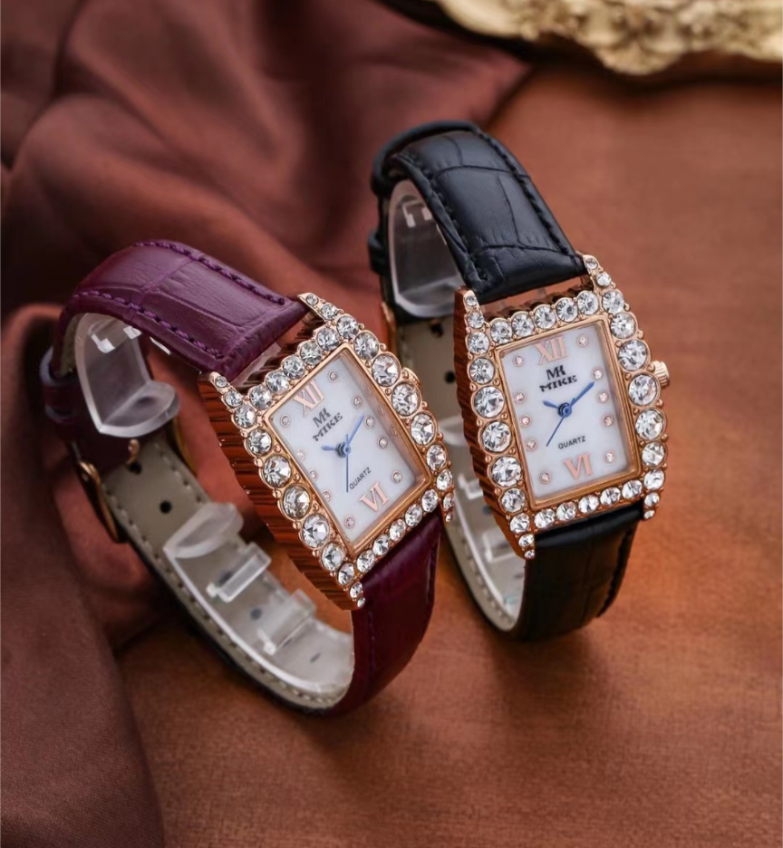 MIKE热销气质韩版皮带钻表防水保色手表时尚精美方型款表盘石英表