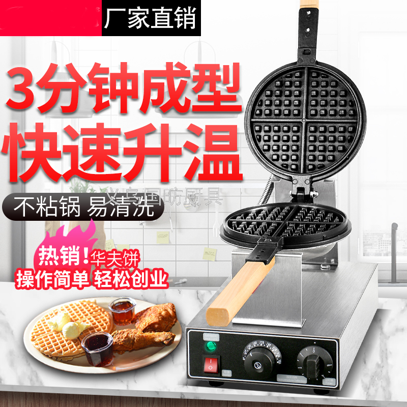 商用电热华夫饼炉FY-1E圆形格子饼华夫炉单头不粘锅松饼华夫饼机