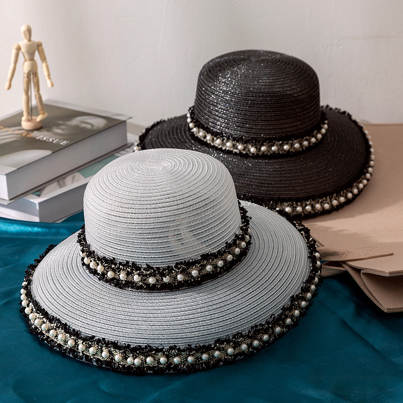 韩版时尚珍珠渔夫帽夏凉帽盆帽成人网纱遮阳防晒帽太阳帽礼物女