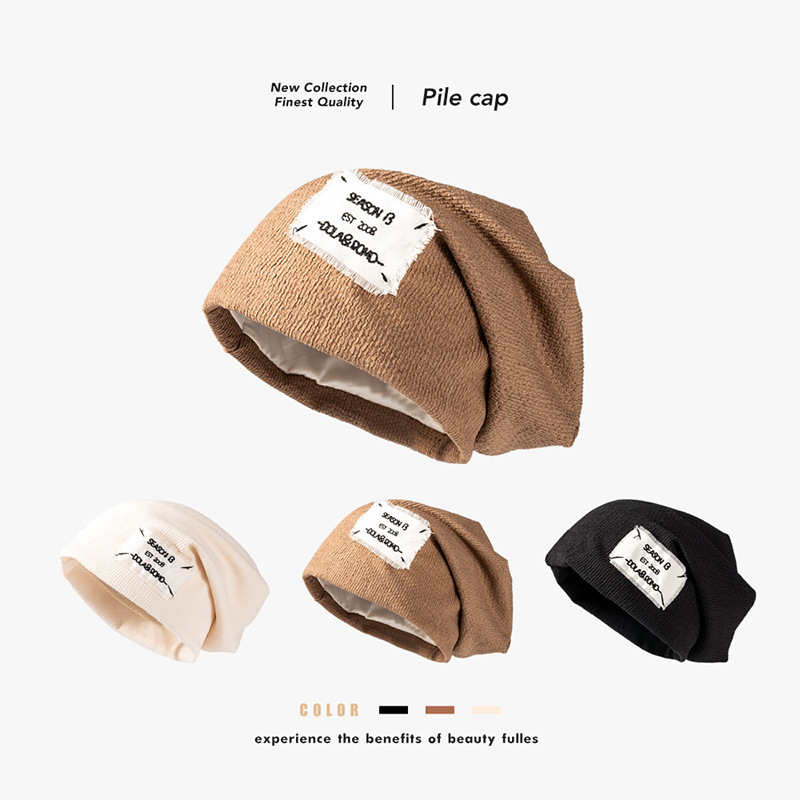 秋冬时尚韩版字母贴布堆堆帽女无檐夜店户外学生套头帽跨境月子帽