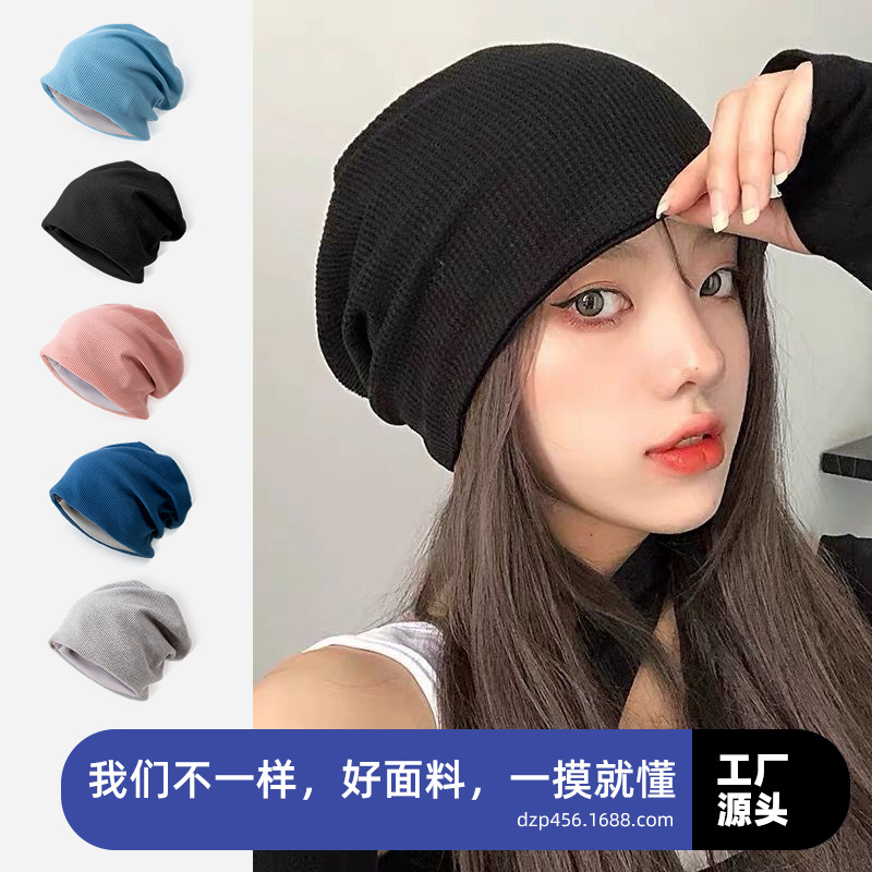 显脸小~韩版堆堆帽日系网红保暖冬天针织帽秋冬女帽子套头帽运动