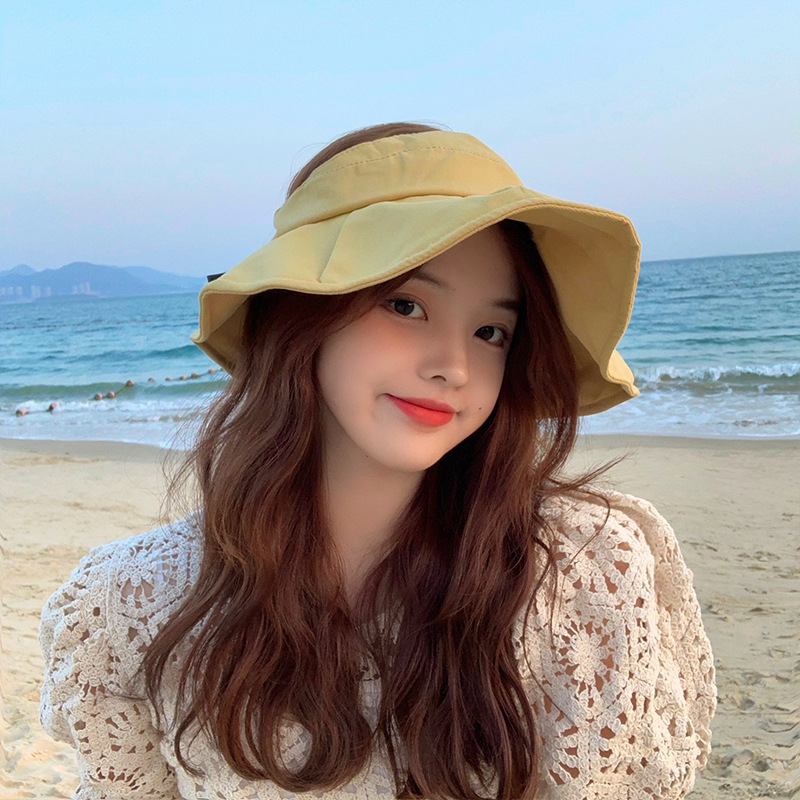 空顶小帽檐清新遮阳帽 夏季防晒紫外线可调节户外沙滩无顶渔夫帽