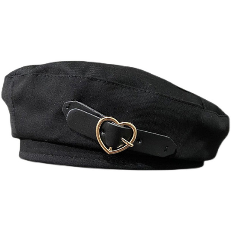 皮扣爱心英伦复古贝雷帽女瓜皮蓓蕾帽网红ins潮人街拍百搭画家帽