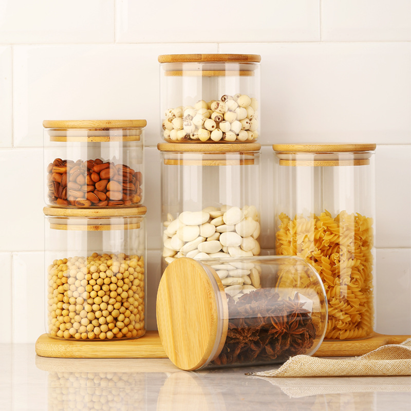 竹盖高硼硅耐热玻璃储物罐密封玻璃罐零食糖果坚果杂粮储藏罐
