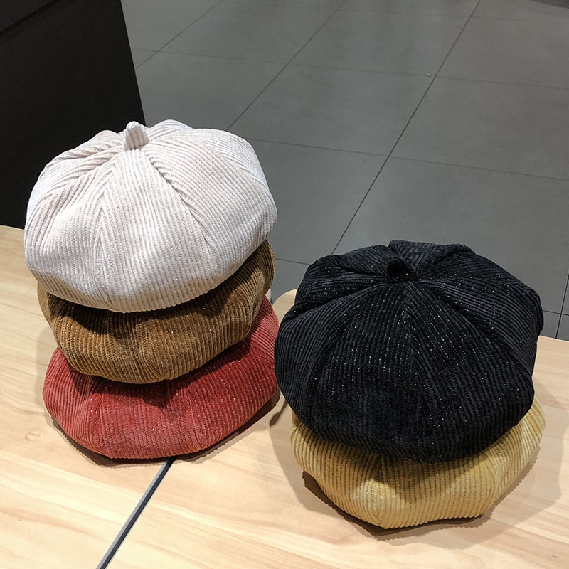 秋冬韩版潮灯芯绒贝雷帽子女休闲时尚百搭英伦复古画家帽蓓蕾帽子