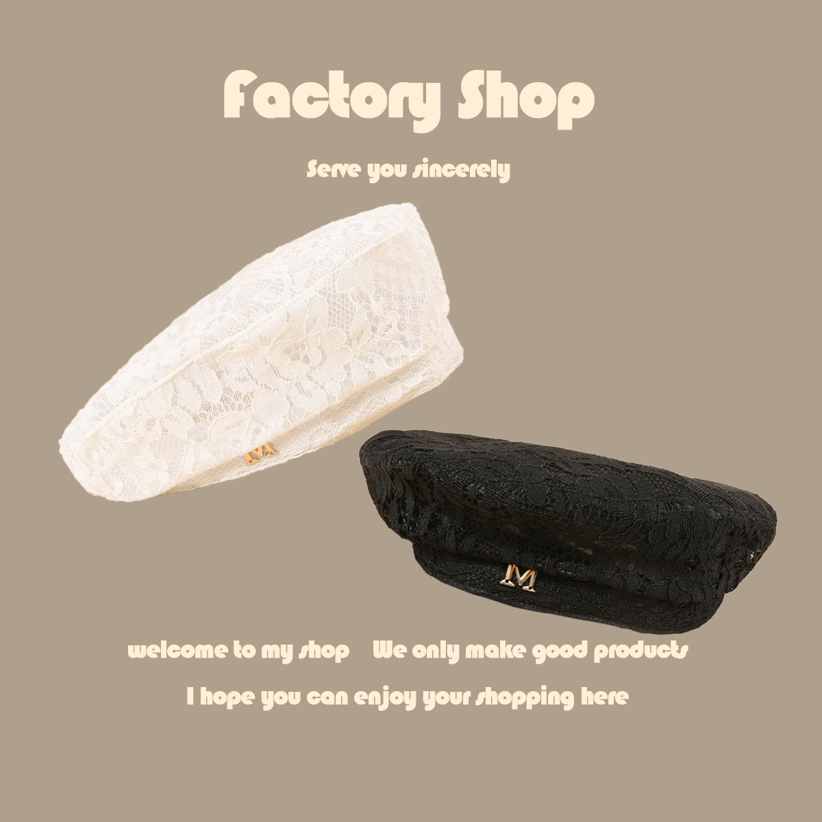 夏季新款M标蕾丝贝雷帽女韩版时尚潮流网红百搭画家帽日系纯色帽