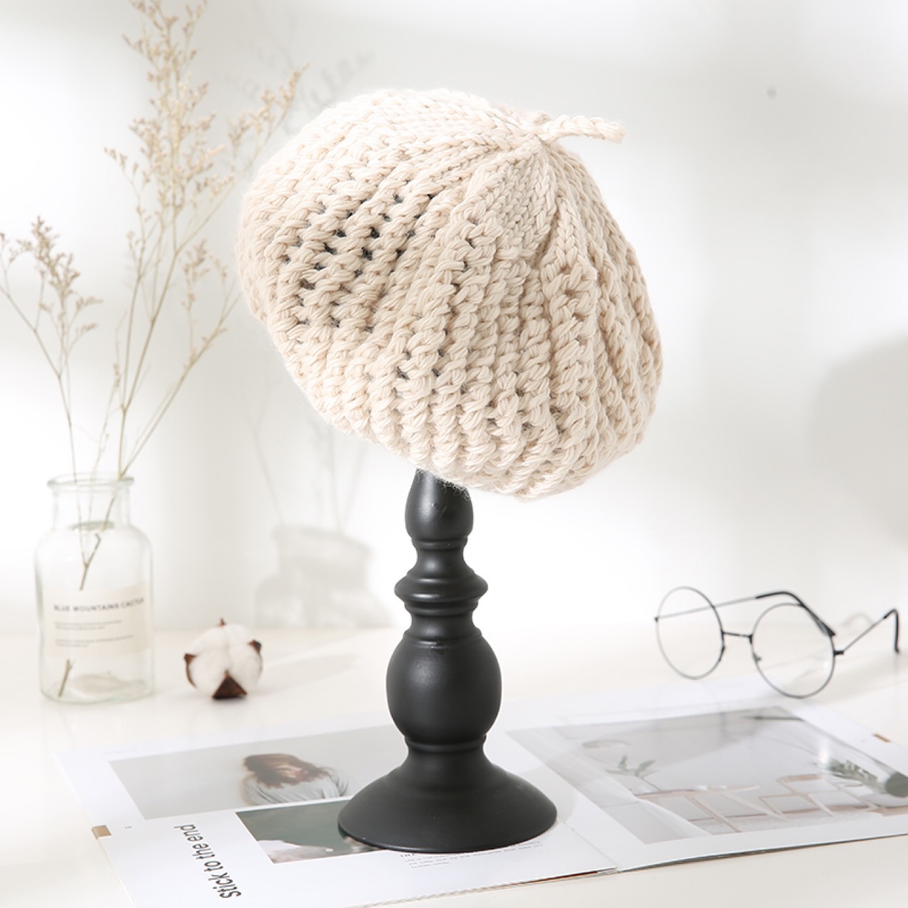 女装新款毛线贝雷帽2022新款圆顶女装百搭针织毛线帽时尚针织女士