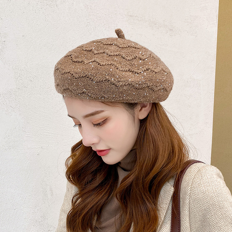 帽子女秋冬羊毛花边贝雷帽 时尚韩版日系针织帽复古画家帽南瓜帽