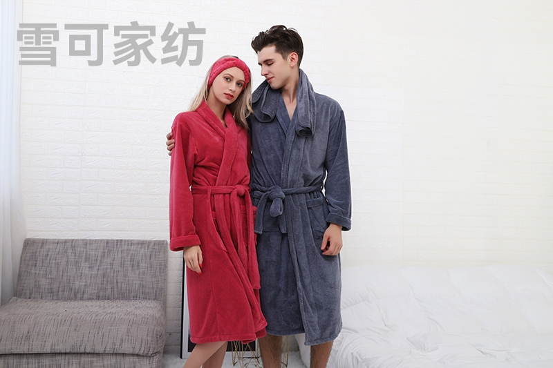 浴袍浴帽锦绵绒情侣睡袍珊瑚绒吸水浴衣 L:105cm XL:115cm