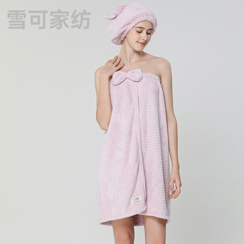 云感绵浴裙浴帽套装珊瑚绒吸水抹胸女士浴巾可贴牌生产