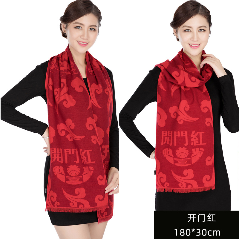 平安福围巾中国红男女通用定制logo同学聚会大红色年会定制开业