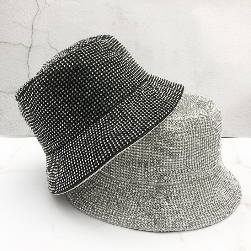 三A级新款满水钻渔夫帽网红款手工镶钻宽帽檐显脸小潮遮阳防晒帽