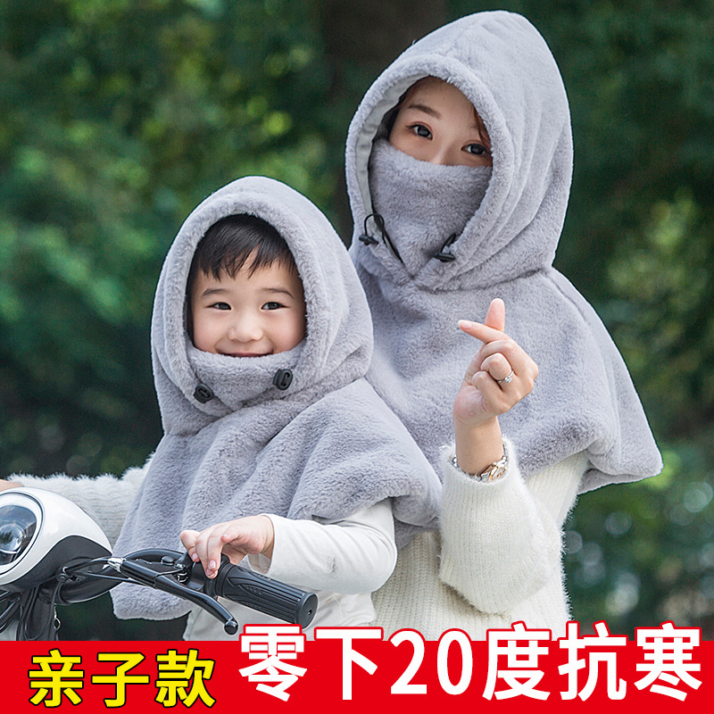 抖音同款网红斗篷披肩加绒儿童骑车防风遮脸户外加厚秋冬季女帽子