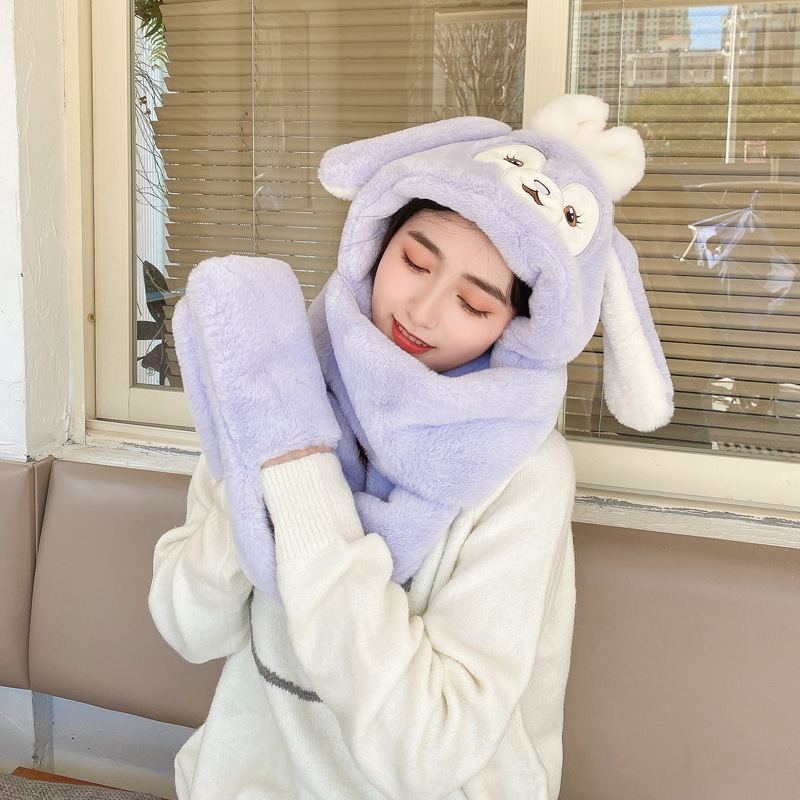 卡通帽子女冬季毛绒连体围巾三件套加厚保暖可爱小鹿防风护耳围脖